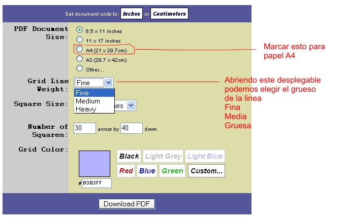 Una vez elegidas todas las opciones, daremos al boton "download pdf", esto nos permitira bajranos un archivo