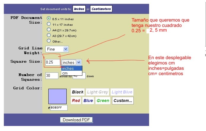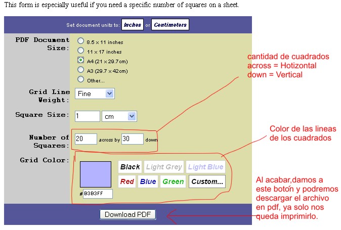 cuadrados de 1 cms pondremos 1, si queremos que sean de 5 mm, pondremos 0,5