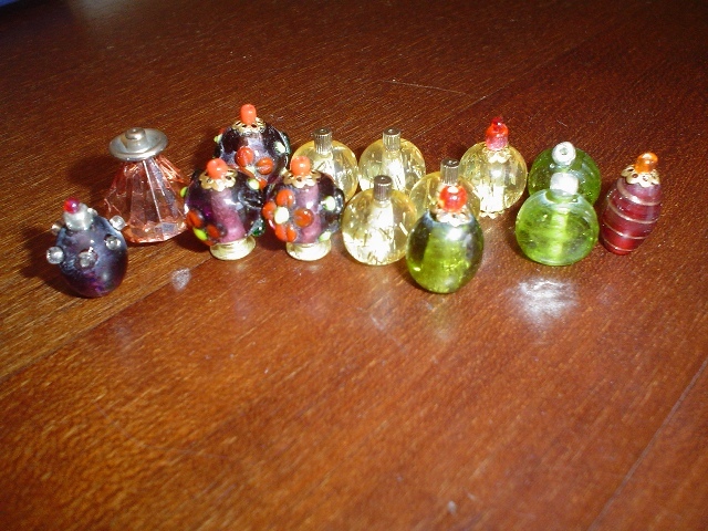 Ese fin de semana compré y busqué en casa por alborios que pudiera usar para hacer botellitas de perfume. Usé cuentas chiquitasy otras cosas que encontré como muelles para ropa, cierres de colares,...