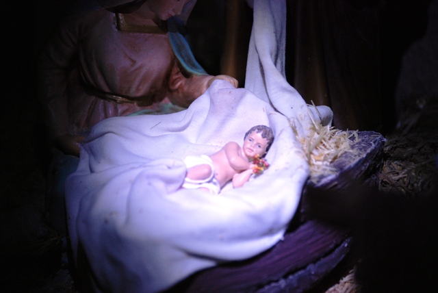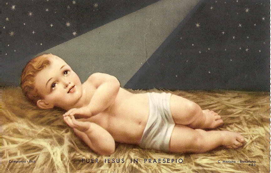 Postal del "Niño de Belén" y una fotografía de nuestro Belén partícular del Niño Jesús.