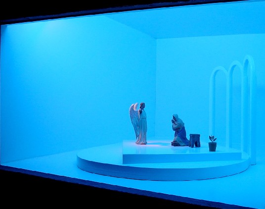 Pongo un ejemplo de una obra pictórica sobre San Antonio de Padua con el niño, con casi la misma escena en un belen que se pudo ver en Sevilla hace dos años, Obra de Juan carlos Alvarez.