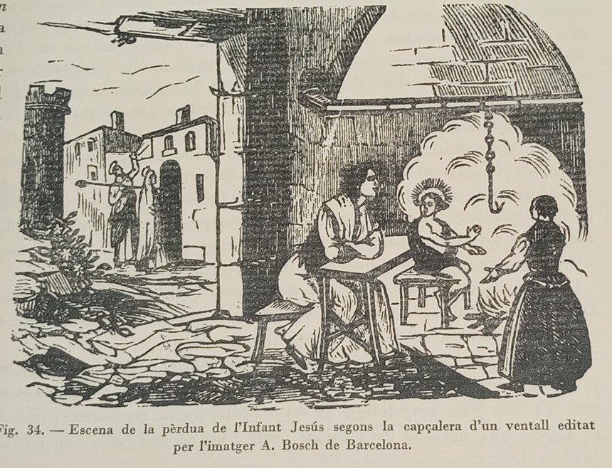 Ilustraciones del libro El Pessebre de Amades, en el fondo se ve a los 'catarinets' buscando...