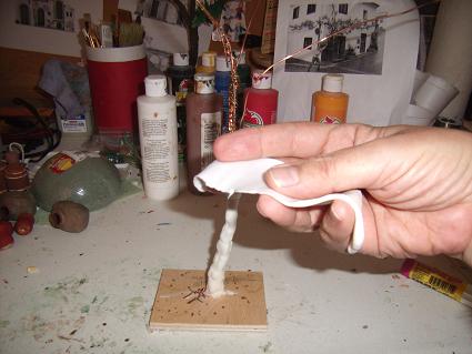Esta parra esta hecha de alambres, pasta de porcelana fria (receta de Lola) y las hojas con un troquel de hojas de parra, un aplastador para ajos y cuter se le da un movimiento de semi circulo cuando esta saliendo la pasta (muy pequeña porcion para que las uvas queden pequeñas) y cuando secan queda el racimo, solo hay que pegar de dos en dos y ya.. espero les guste