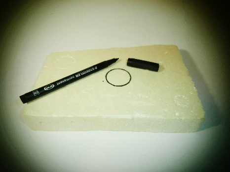 *En primer lugar marcamos con algo redondo (el tapón de la cola va genial) la circunferencia que será la que determinará la base de nuestros cestos, (podemos dibujarla con el rotulador o símplemente marcarla en el pórex)