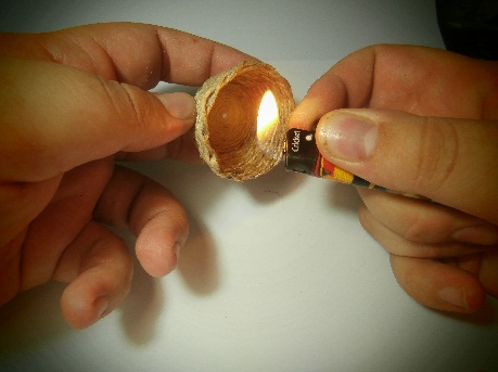 * Dejamos secar por completo sobre una o dos horas y para rematar le pasamos el mechero por toda la superfície (de esta forma eliminaremos los hilillos sueltos que la cuerda haya podido dejar a la vista)
