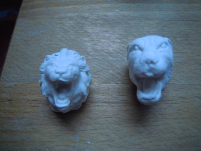 1º) Cabezas de animales que en mi caso en de una bolsa de animales de esos que venden en las tiendas que hay de todo, que son de plastico y que me vienen bien para mis figuras que son de entre 10 y 11 cm.