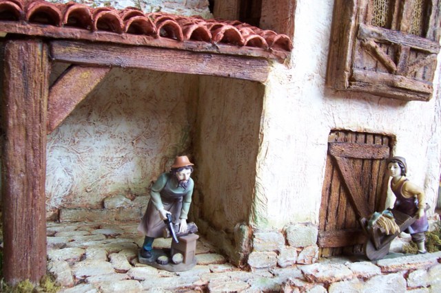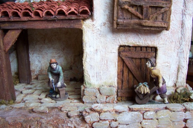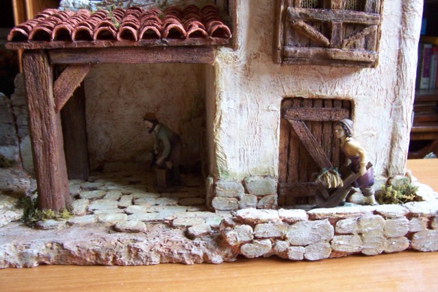 Os mando un pequeño paso a paso de una casa unida a un portalito que vale para poner lo que queramos tanto una carpinteria como el propio belen, espero que os guste.