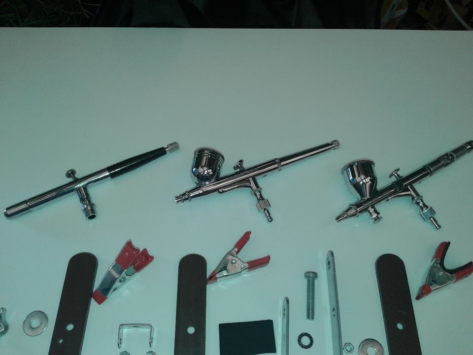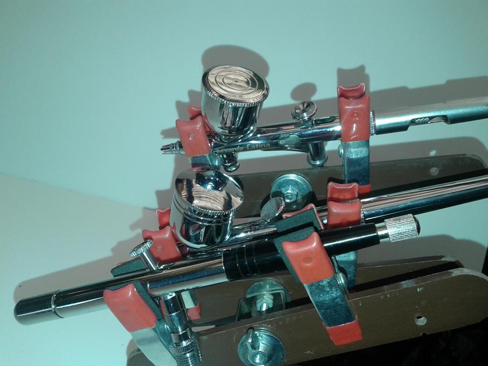 A la hora de realizar nuestros Belenes( Nacimientos), una de las herramientas que utilizamos últimamente es el aerógrafo. muchos necesitamos colocarlos en algún lugar para poder seguir trabajado mientras la pintura seca entre otras tareas. Es en este momento en el cual buscamos alguna pieza como la que muestro en este paso a paso para poder soltar varias de estas herramientas para pintar.