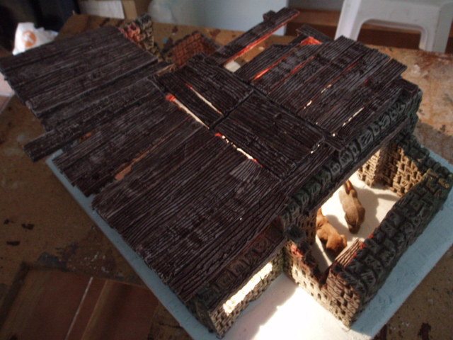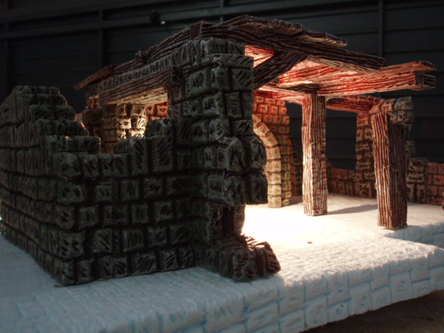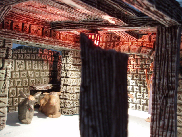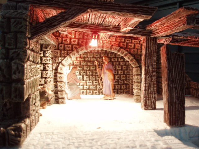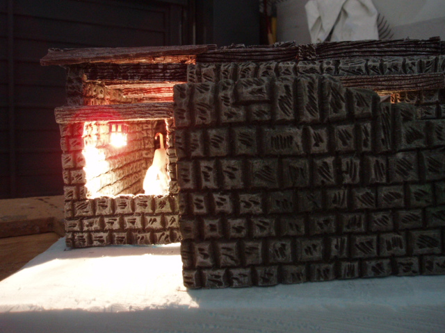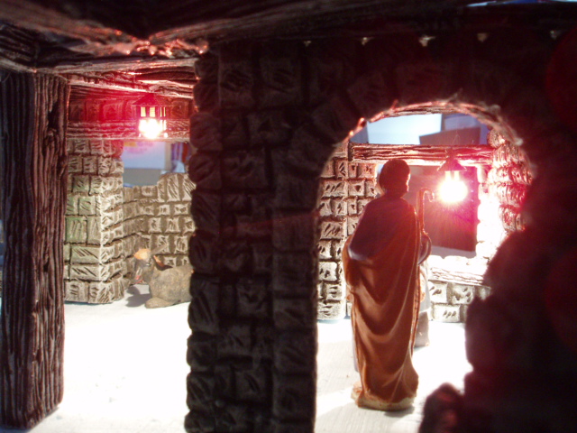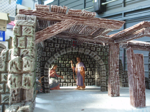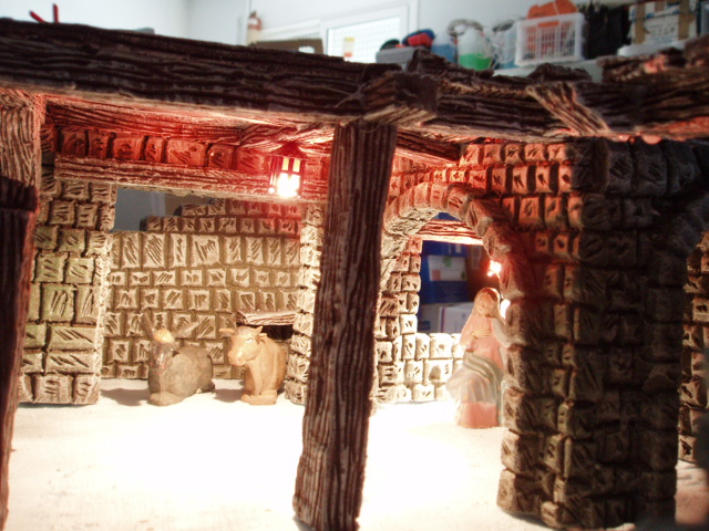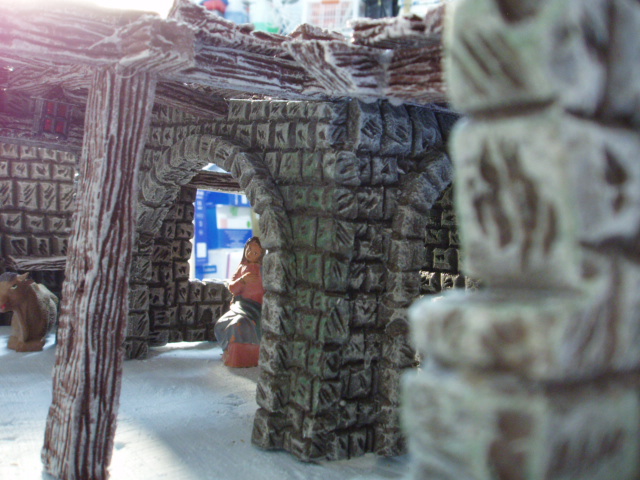 hola a todos como es construmbre todos los domingos os cuelgo los pasos que estoy haciendo del portal esta semana he hecho el techo de madera y las luces en marcha ademas de retocar las piedras con otros tonos verdes y negros y azulados para romper la monotonia y sugerencias que habeis hecho durante la semana y que os doy las gracias ya que asi aprendemos todos.....