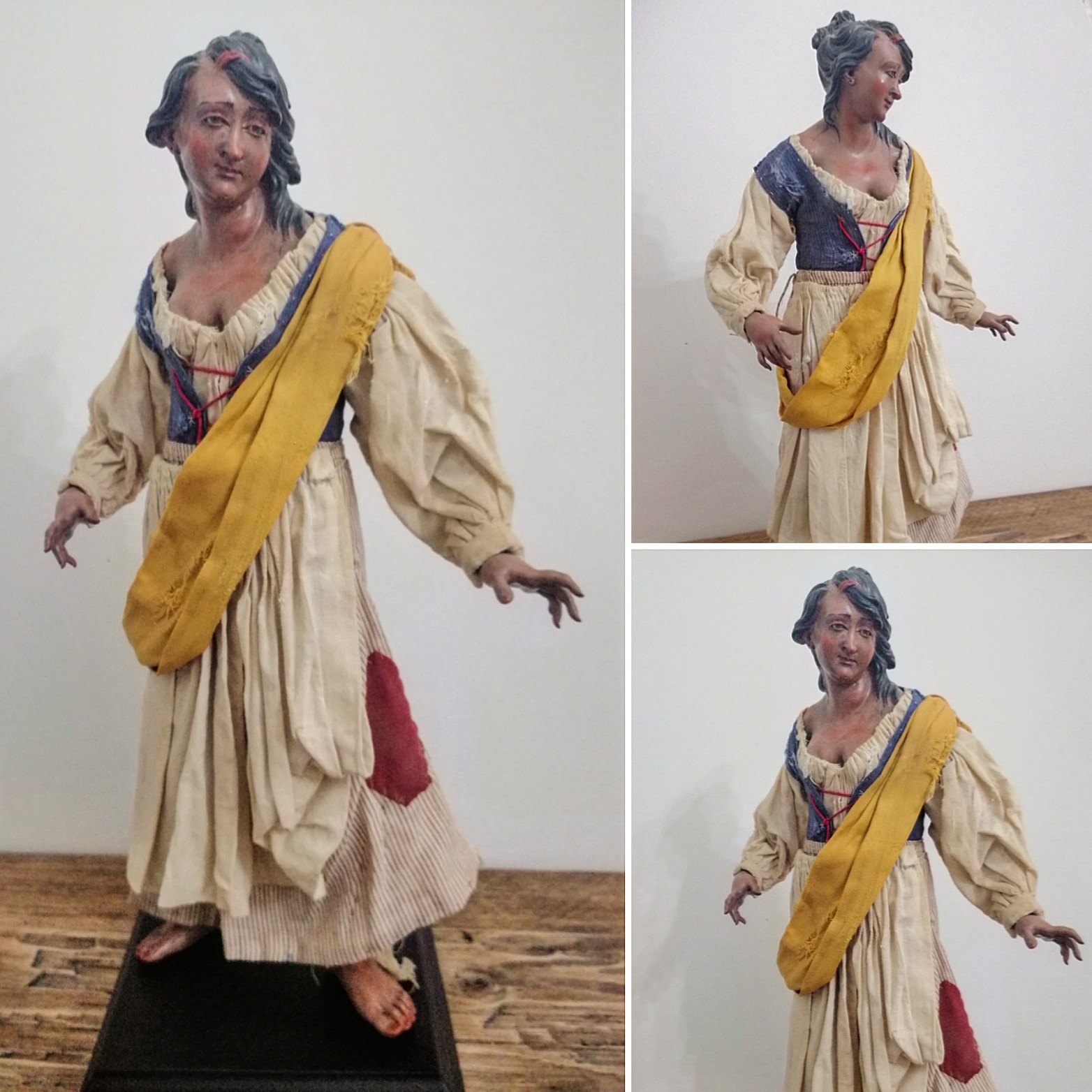 Se vende pastora Nápolitana cabeza de barro ojos de cristal pies y manos de madera medida 38cm autor Marco innocenti