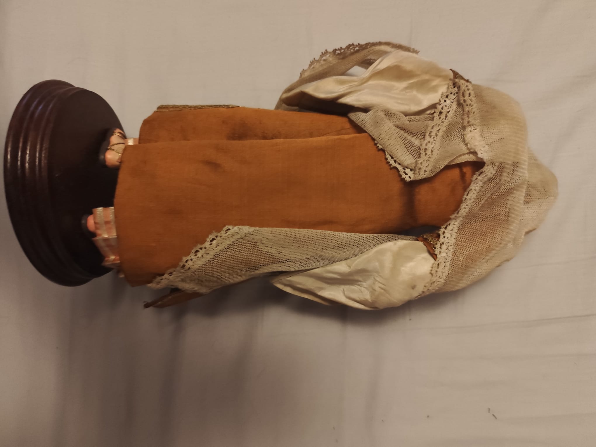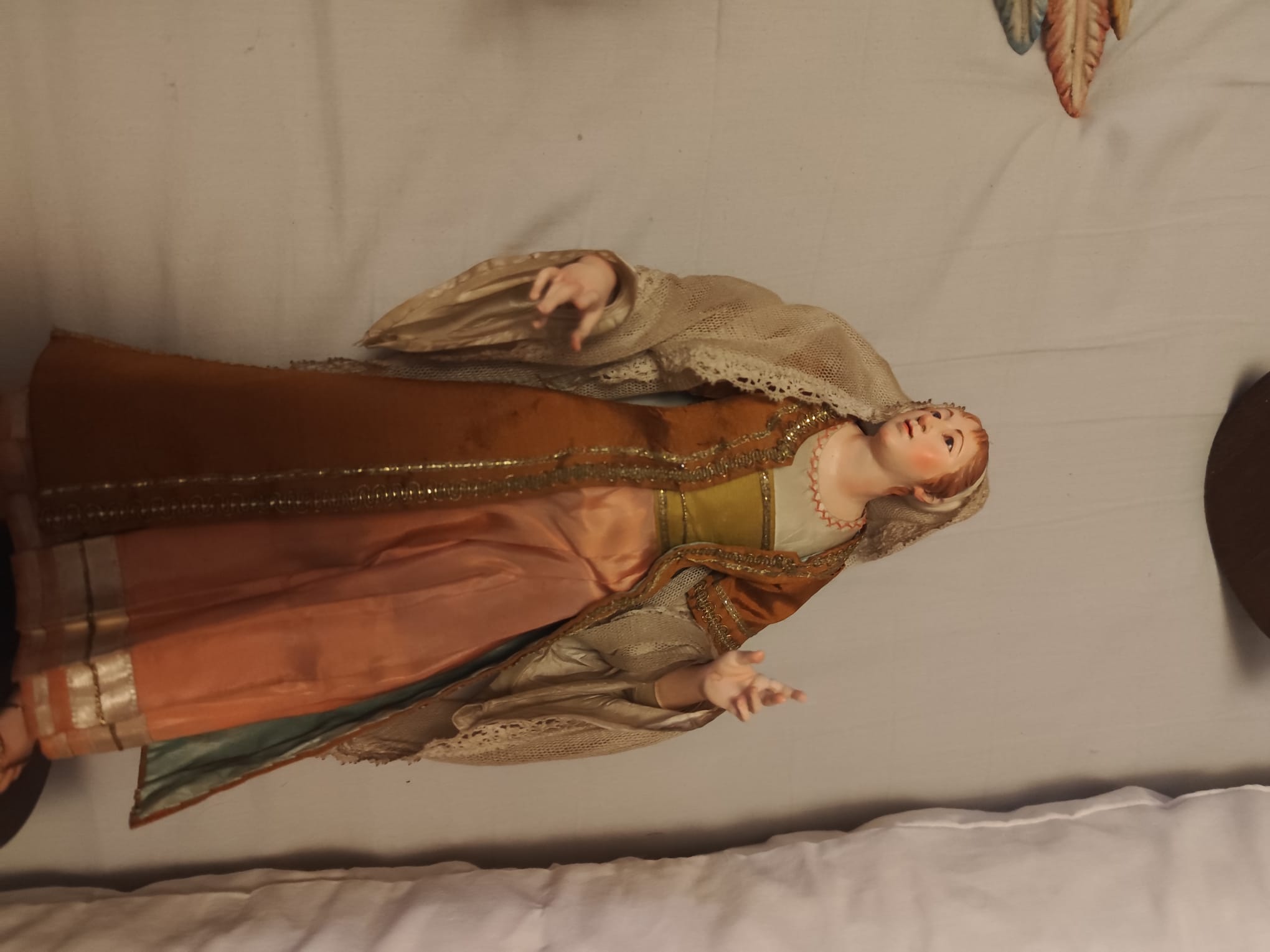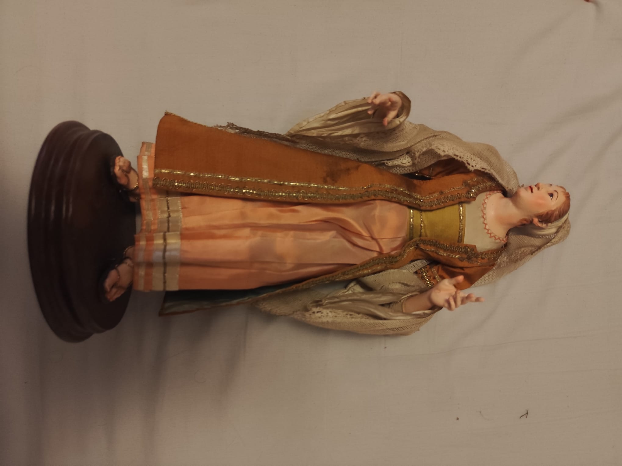 vendo pastora napolitana original. manos y pies tallados en madera y cabeza en barro con ojos de cristal.
