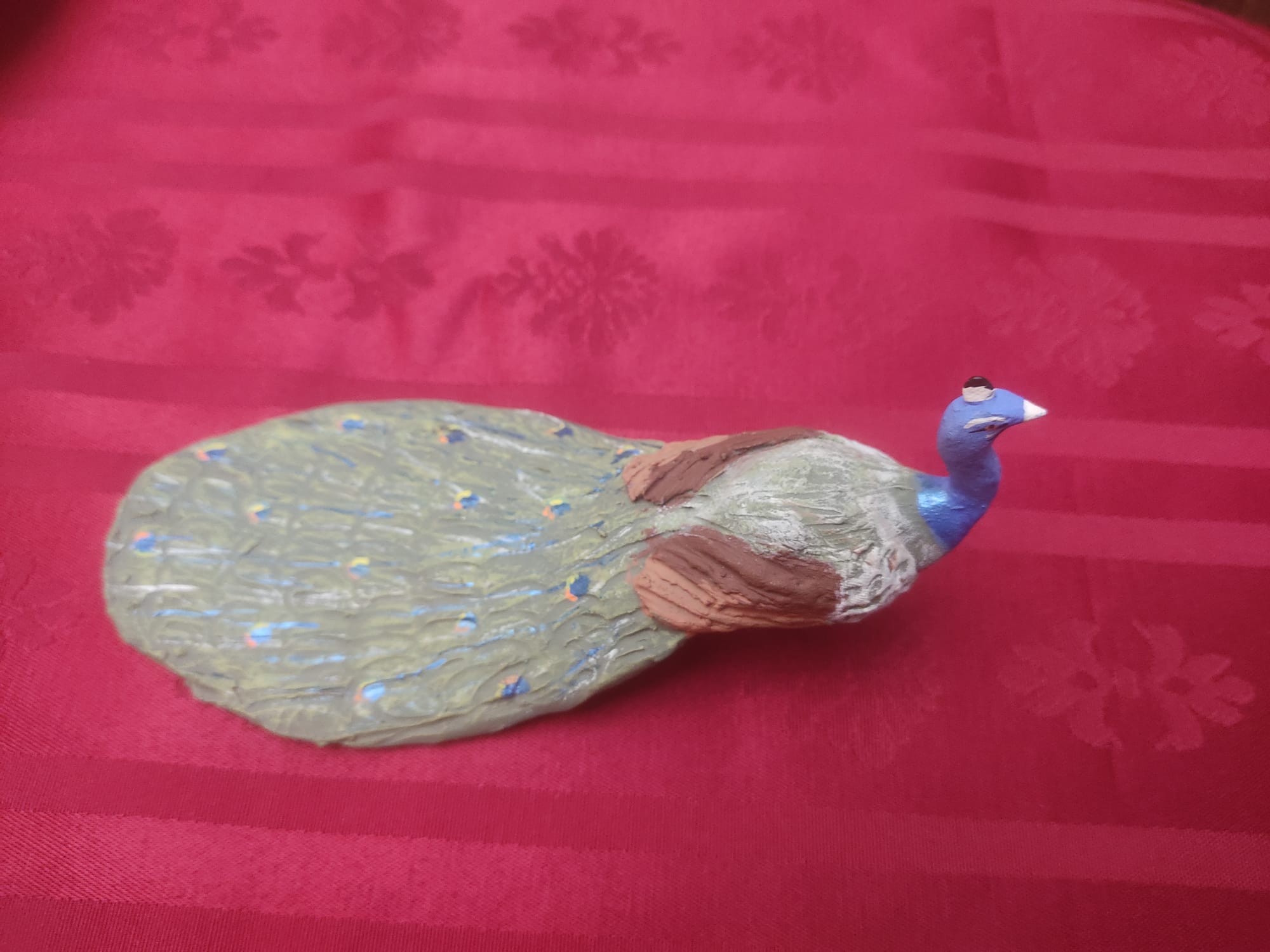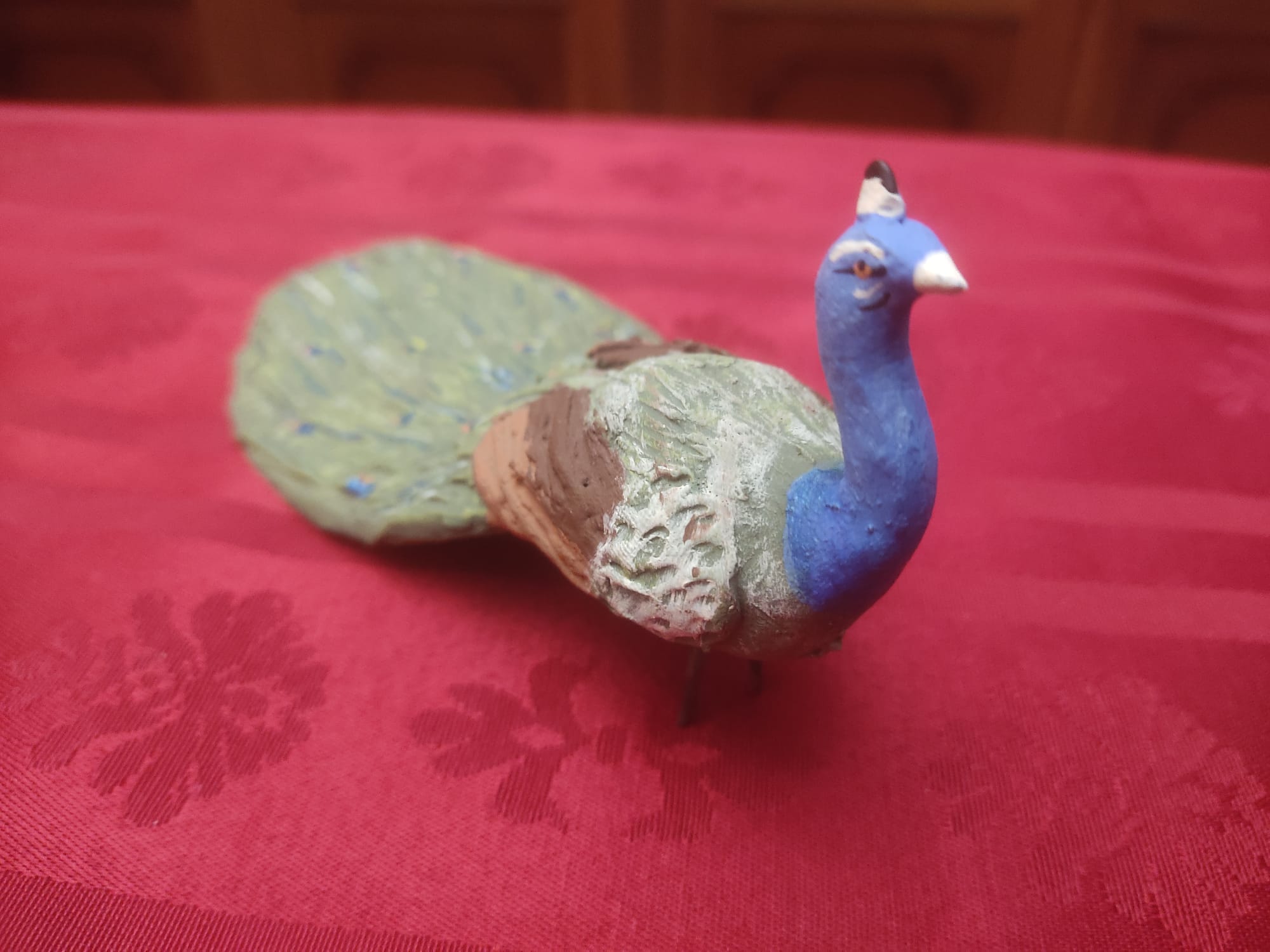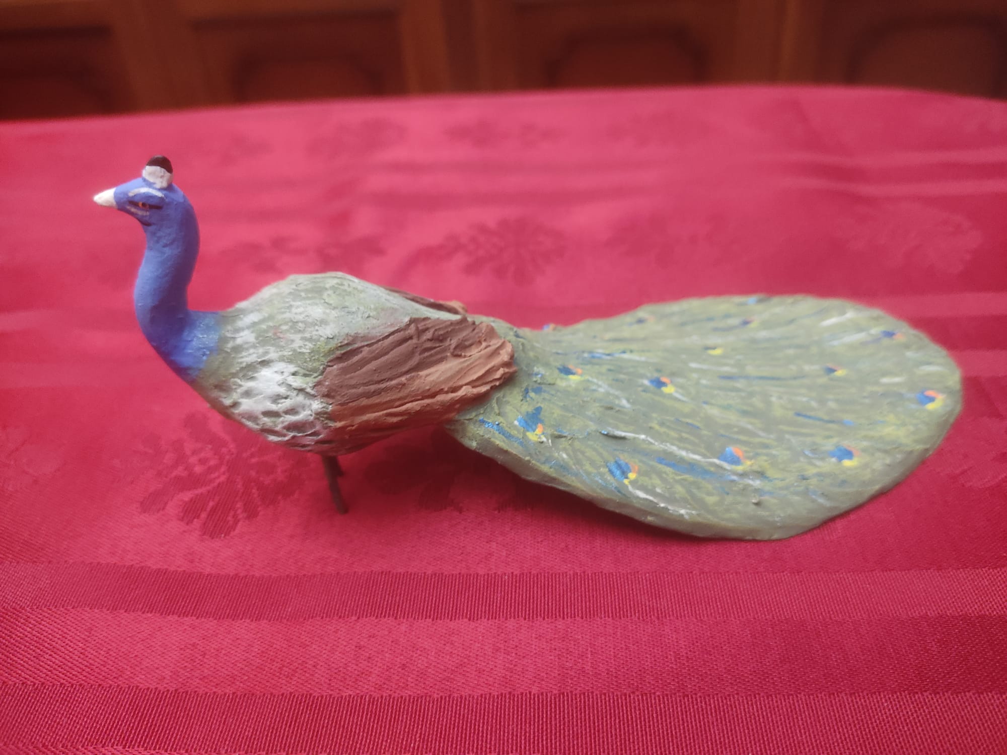 Vendo este pavo real en barro. Mide de largo 17 cm y 7 cm del suelo a la cabeza. Se ajusta a figuras de las series de 19 a 24 cm