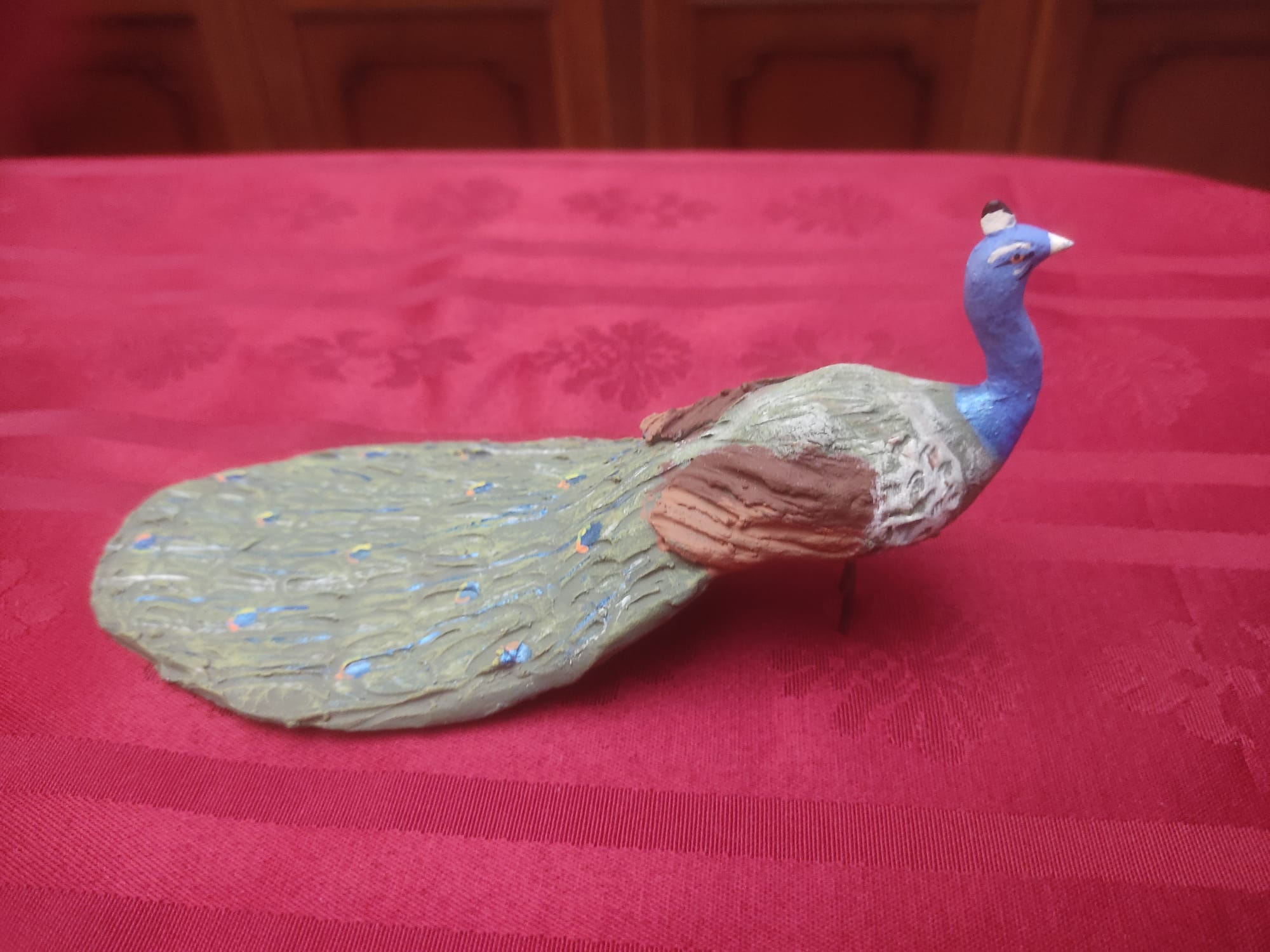 Vendo este pavo real en barro. Mide de largo 17 cm y 7 cm del suelo a la cabeza. Se ajusta a figuras de las series de 19 a 24 cm