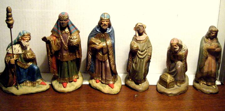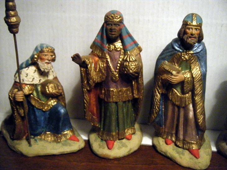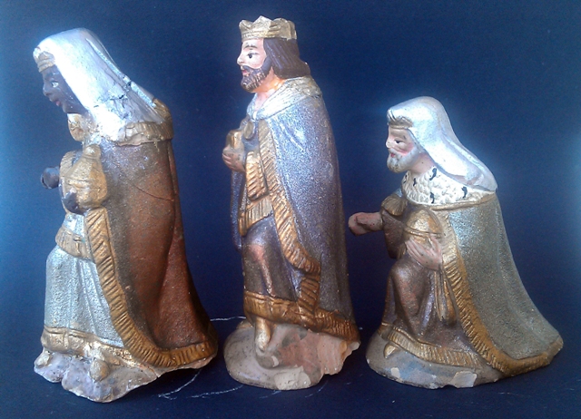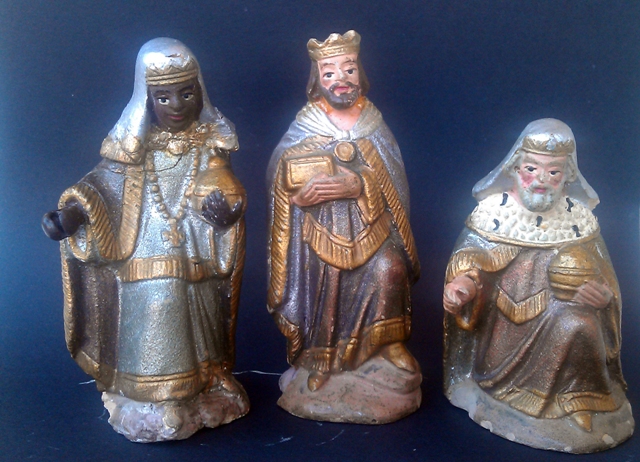 Los Reyes de las pasadas navidades me trajeron estos reyes. A mi parecer podrian ser de Pep del Nas (Josep Prats). El tamaño es de 9 cm. Realmente es una làstima la poca información que disponemos de figuristas relativamente recientes...