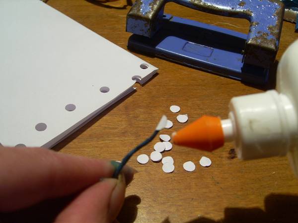 Encolar la punta del alambre y comenzar a pegar los trozos de papel, girando el alambre y luego separarlos para derle la forma de florl.JPG (79KB - 225 descargas)