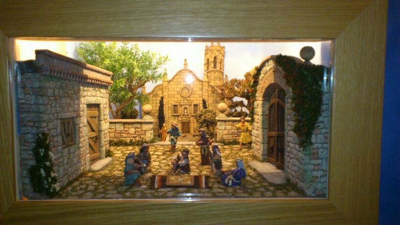 Cuando está todo seco, mezclo en un bote, un poco de musgo picado con la "moulinex", y un poco de césped de modelismo, con cola de conejo (aunque vale también la cola blanca) sin "emborrachar" la mezcla con el líquido. Es decir, la cantidad adecuada para humedecer la mezcla de "verde" y no dejarla flotando en el líquido.