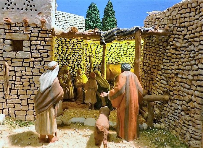 Re: Pequeño diorama restaurado del pueblo de Belén, con figuras de 8 cm,