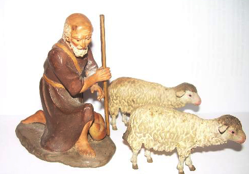 He hecho más fotos a mi "vitrina Teixidor" y con ellas y con las fotos que hemos ido colgando, he llegado a una conclusión: Teixidor es el de las figuras "buenas" y el resto son copias mejores o peores. Todas las figuras GRANDES (de más de 11 cm) con ojos redondos y desorbitados NO son Teixidor, como por ejemplo, la anunciata que he utilizado de comparación con mi gaitero. La pésima ejecución de caras, manos (comparad la finura del gaitero y otros con esas manos pequeñas y mal modeladas) y los errores en las proporciones determinan que son de un escultor mediocre, y las obras buenas de Teixidor no son mediocres: además de mi gaitero, mirad los dos pastores de la APB (en que incluso introducen un Masdeu de un nivel de calidad equivalente), etc. En tamaño mediano, los tres pastores de Jeremfer, el pastor arrodillado de Antoni o el que acompaña la carreta son de excelente calidad, proporcionados y bonitos, sin ojos extraviados, ni cabezones, mientras que la anunciata de Oscar me parece copia. En tamaños pequeños es interesante la colección de Antoni, en que pese a ser chiquitas no tienen errores significativos de modelaje y por supuesto ninguno tiene ojos desorbitados, son sencillos por ser más pequeños, pero no "cagados". Yo tengo unos pequeños de calidad similiar (y otros malos, claro).