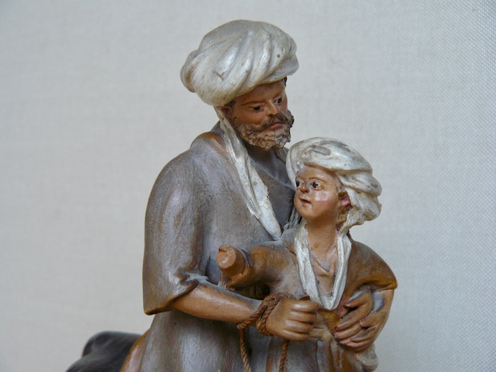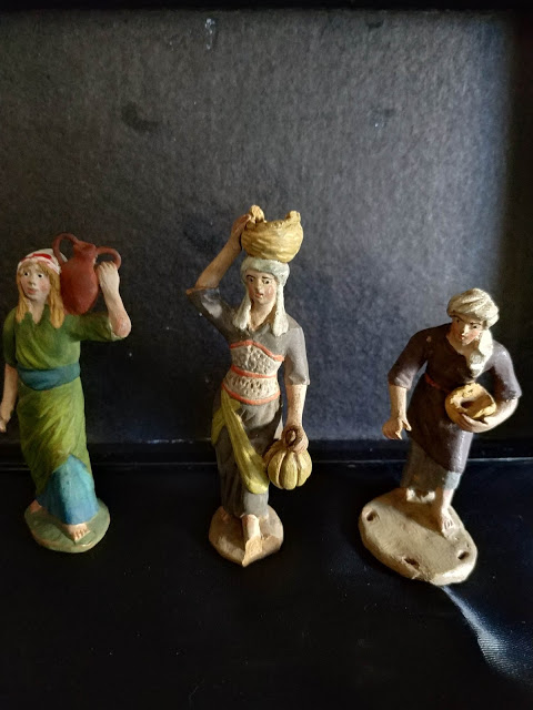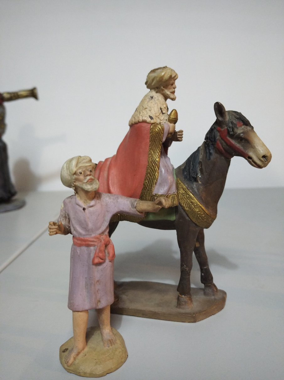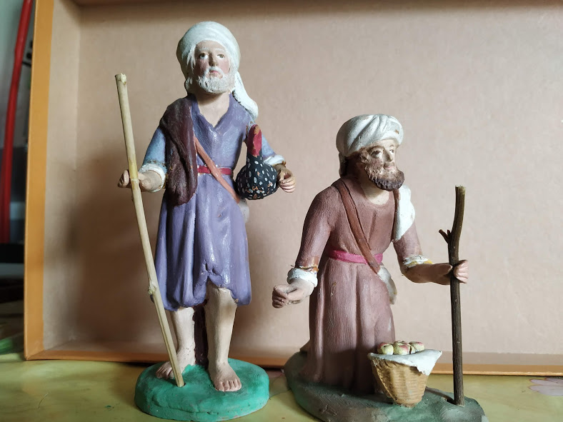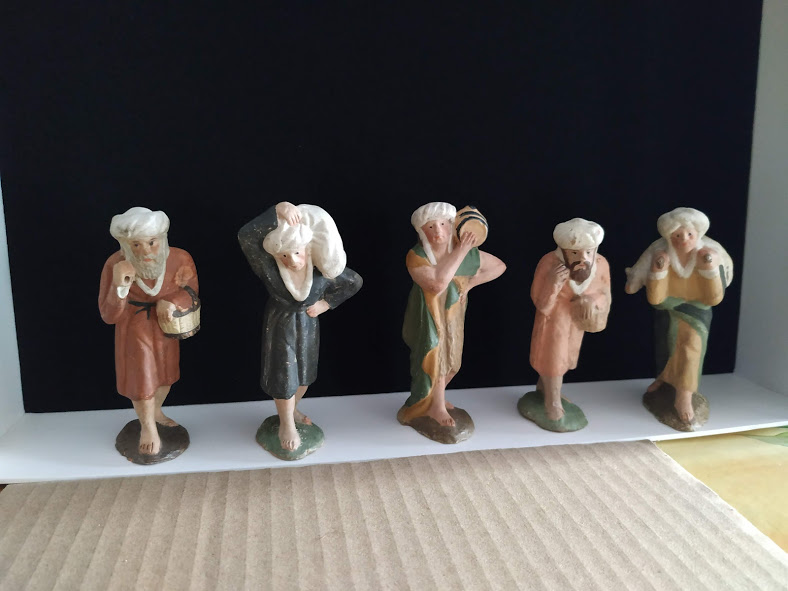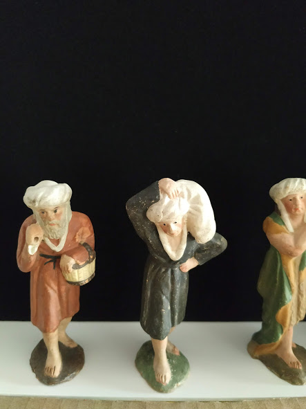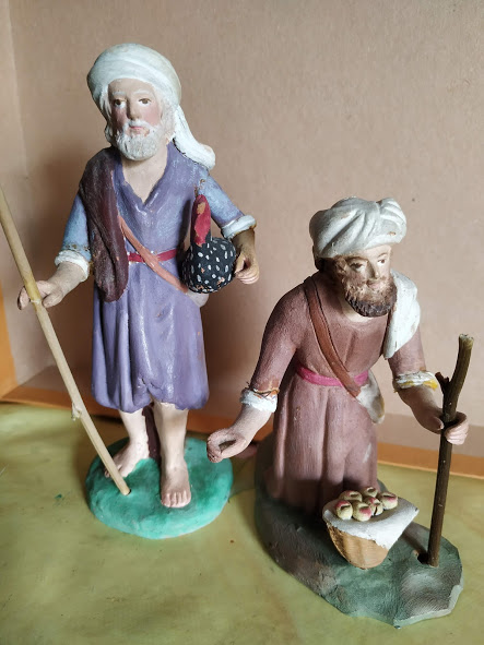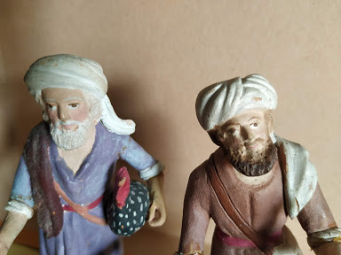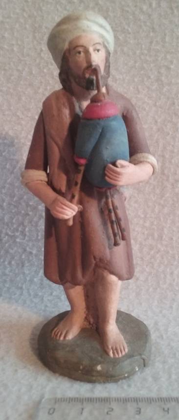 Hola a todos, estas dos figuras para mi no son, claramente, Teixidor. Las de Teixidor tienen otro aire, algo más de realismo y expresión en sus rostros y escultura en general. Estas son más tipo "muñequitos", tienen un aire más infantil. Con ello no pretendo desmerecerlas, ni mucho menos. Si diría son S.XIX pero no Teixidor. Desconozco autor o taller. Yo de estas tengo un pastor músico ( amb sac de gemecs o cornamusa ). La base de la figura es la misma de la que está de pie; solo varía el color de la túnica, del pelo y que lleva el instrumento.
