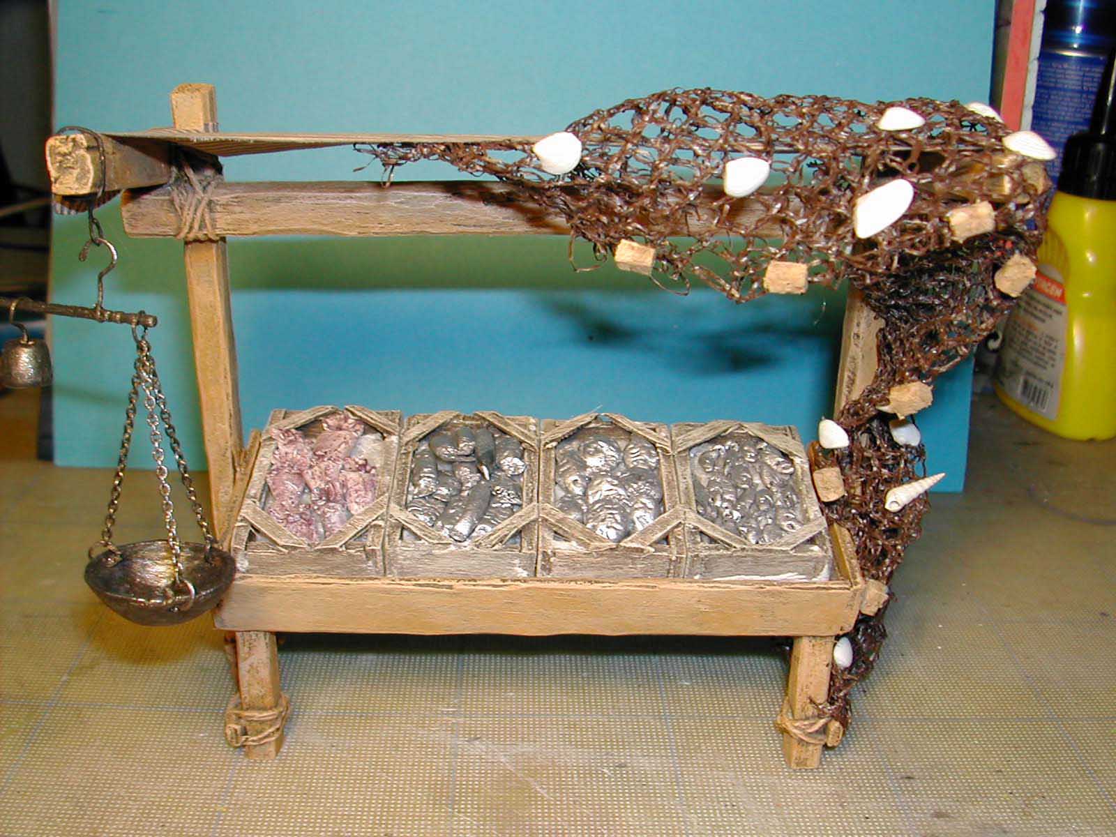 Es precioso el puesto.Yo he empezado ya con el Belén para el 2010 ( como es el primer año aún no tengo nada) y también quiero poner un puesto de pescado,¿me puedes deci que has puesto para que parezca hielo?