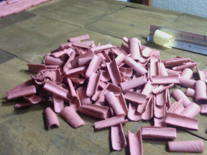 -5º.- Se van cogiendo una a una y se colocan en un objeto del diámetro mas o menos deseado (yo utilizo restos de cable de antena de TV).