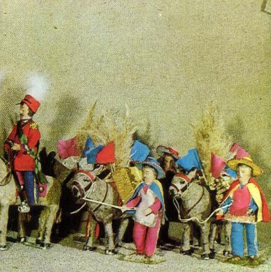 PopP18717.jpg (38KB - 200 descargas)Por algún país más de Latinoamérica si he encontrado algún vestigio de este tipo de figuras, divertidas, populares, inocentes, dirigidas a clases menos pudientes. Nos enconramos campesinos en sus sembrados, arrieros con sus caballerías, revendedoras del mercado, ovejas de algodón apelmazado. El más notable fue el de Popayán, cultivado por Emérita Malo y sus hermanas de aguja y dedal. La tradición de este tipo de belénes no es muy antigua, quizás de finales del XIX o principios del XX pero desde luego han sabido transmitir con su inocencia el mensaje de la Natividad