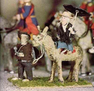 PopP18717.jpg (38KB - 206 descargas)Por algún país más de Latinoamérica si he encontrado algún vestigio de este tipo de figuras, divertidas, populares, inocentes, dirigidas a clases menos pudientes. Nos enconramos campesinos en sus sembrados, arrieros con sus caballerías, revendedoras del mercado, ovejas de algodón apelmazado. El más notable fue el de Popayán, cultivado por Emérita Malo y sus hermanas de aguja y dedal. La tradición de este tipo de belénes no es muy antigua, quizás de finales del XIX o principios del XX pero desde luego han sabido transmitir con su inocencia el mensaje de la Natividad
