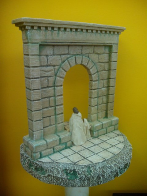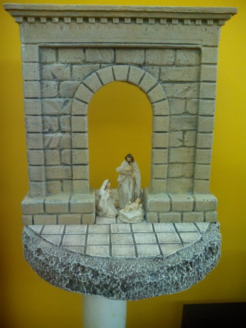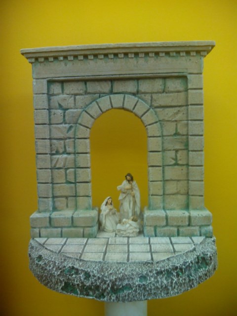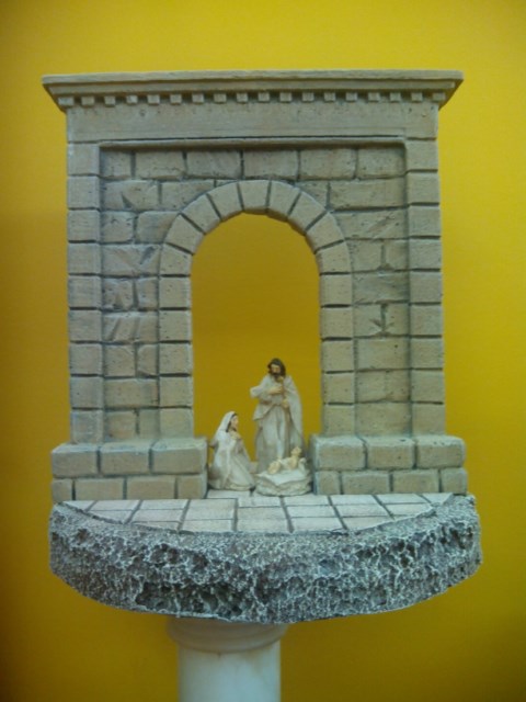 Aquí os traigo otro trabajo más. En esta ocasión es un pesebre estilo Romano, realizando una Puerta de entrada a Ciudad y con la virgen, El Niño y Jesús bajo su arco.
