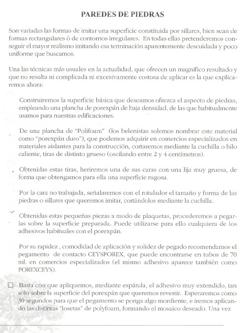 De principio de digo que es una obra magnífica donde se aprenden multitud de técnicas y te solucionan muchos problemas que se nos plantean a los que somos aficionado al modelismo (totalmente aplicable al BELENISMO), merecería la pena intentar conseguirla, también te adjunto unas fotos de uno de los libros para que te sirva de orientación.