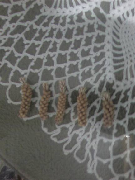 En las 5, 6 y 7 las piñas ya cortadas y preparadas para poner en una caja de fruta, la cual se esta secando en estos momentos.