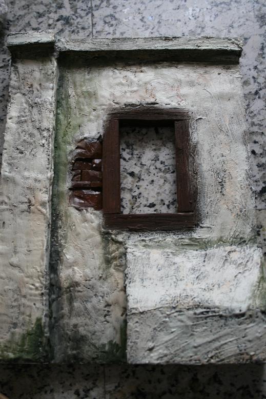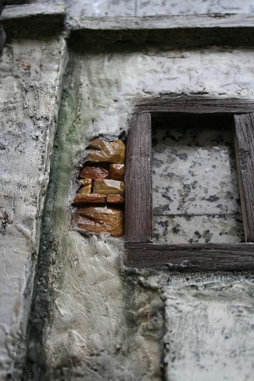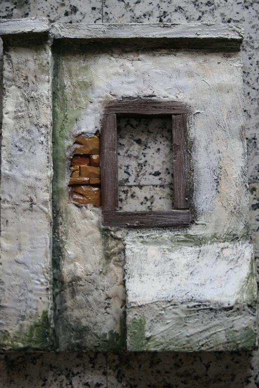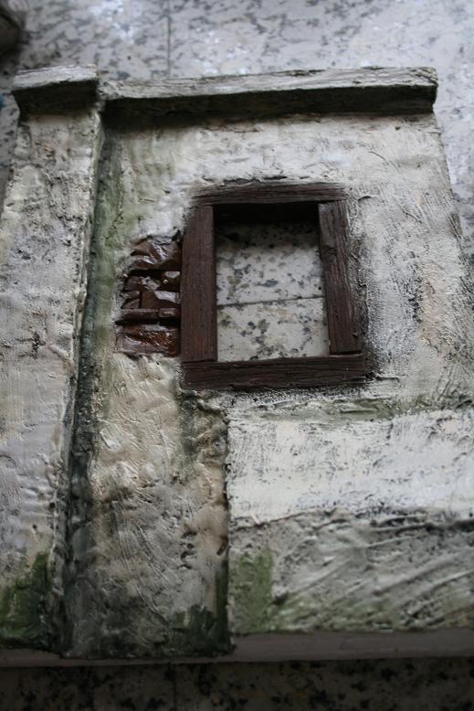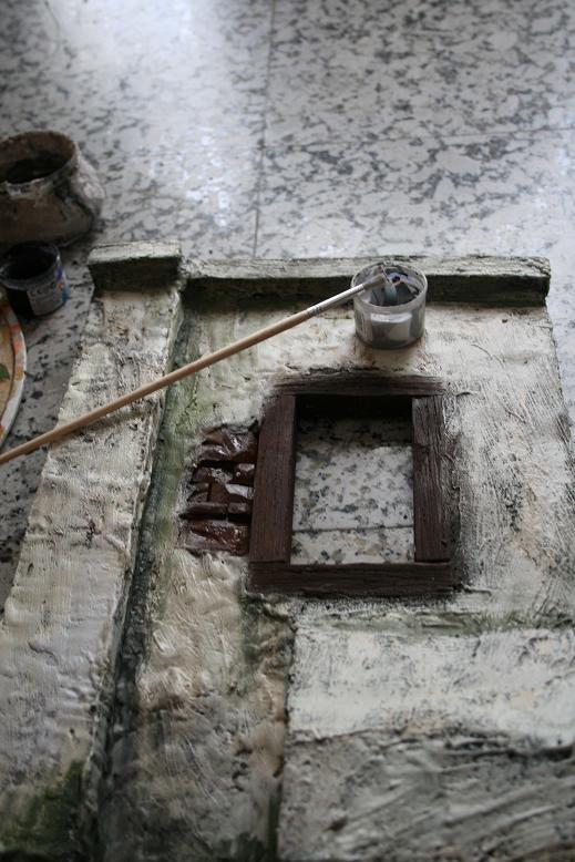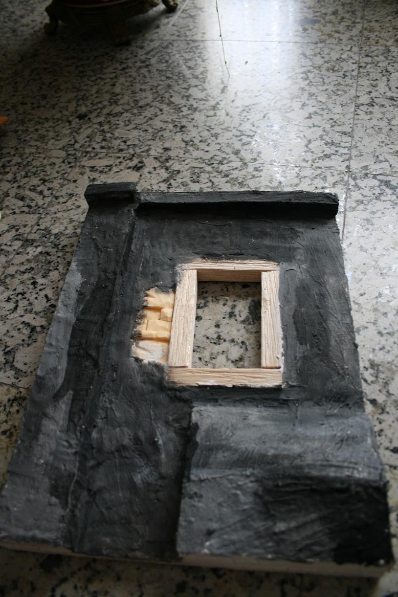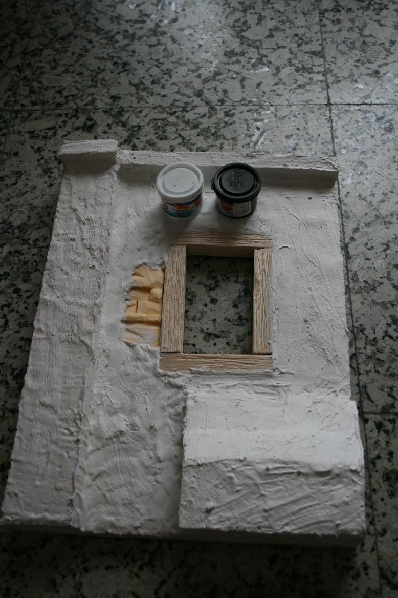 Vemos los tonos quevamos aplicar en el desconchon, intentando que cada sillar tenga un tono diferente, el marron debe estar seco, ya que pintamos directamente sobre el corcho de color el cuál no absorve tanto la pintura y tarda mas secar, de hecho en las fotos anteriores los sillares se ven brillosos señal de que no estan secos.