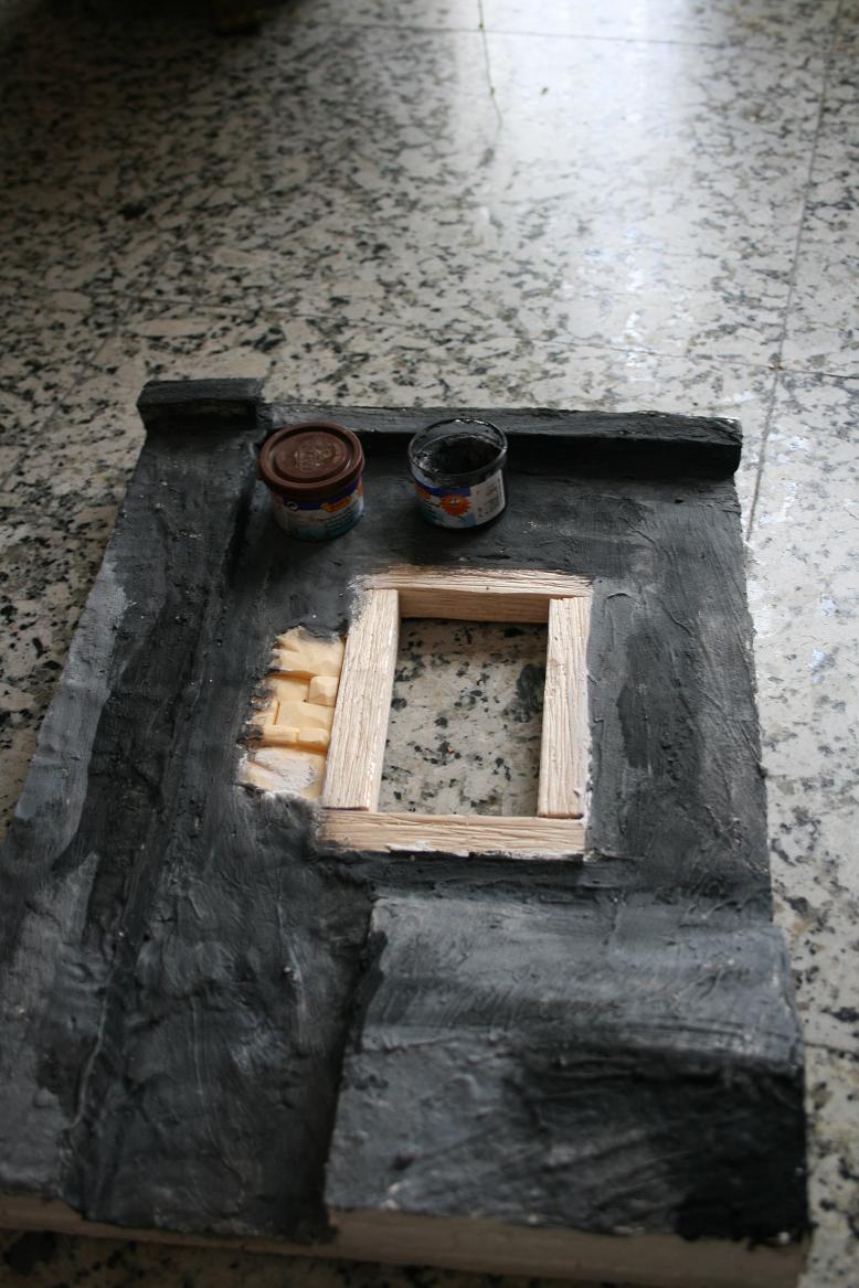 Utilizo para el color base una mezcla de blanco y negro para conseguir un gris plomo. (pintura al agua)