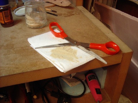 Es muy importante limpiar los dos pinceles usados con disolvente y las tijeras y los