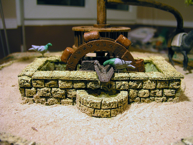 Siguiendo su manual, e improvisando algo de mi parte, he conseguido hacer esta noria para el belén de mi parroquia.