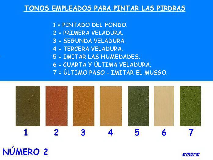 Para el pintado de las piedras, he utilizado los colores que a continuación relaciono