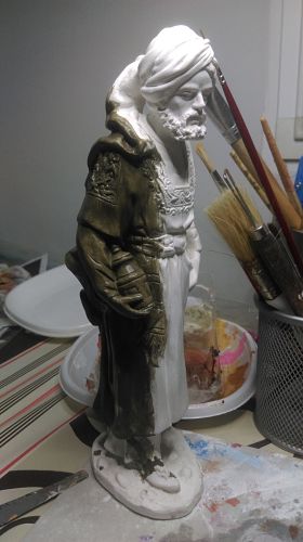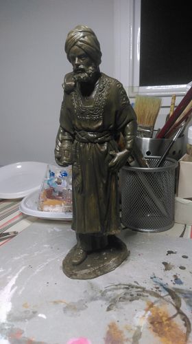 Respecto a los brillos creo que ha sido por el medium acrilico utilizado, creo que desaparecerá si cuando este bastante seca la figura doy protección con cera o con barniz mate.