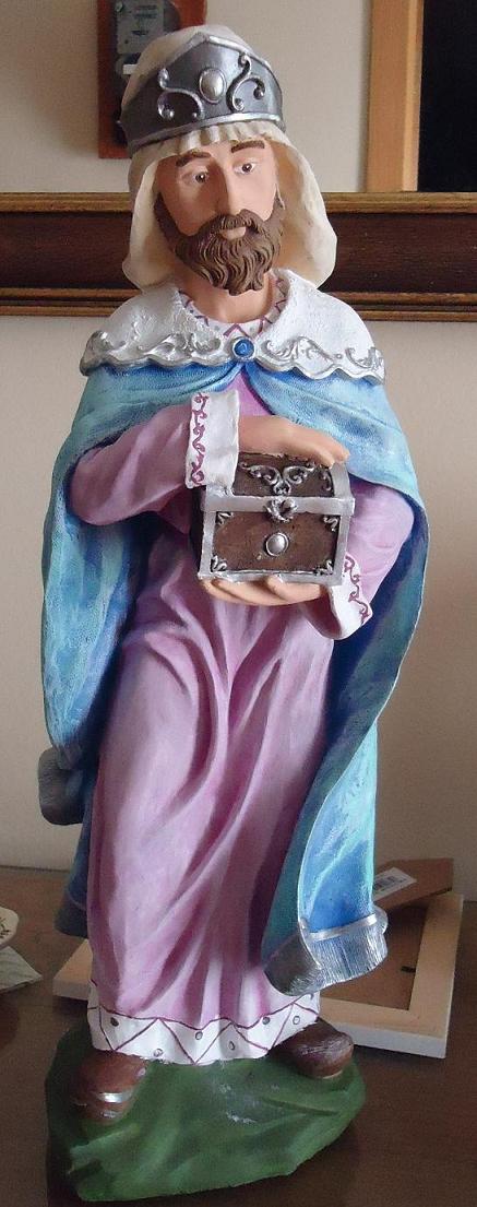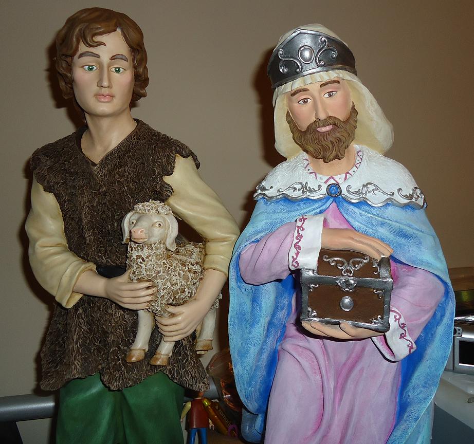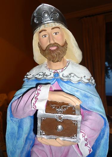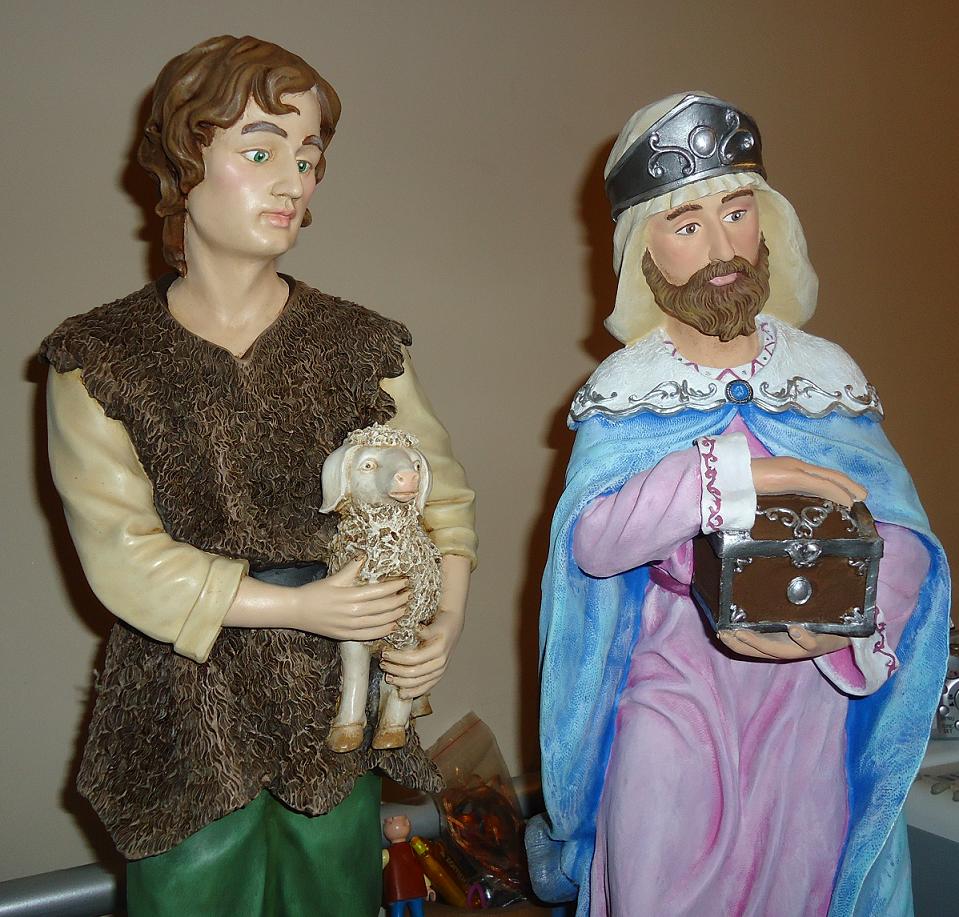 A ver,os explico,como le ponga la cara más roja se le va a quedar como un tomate,en las fotos sale más claro que al natural,intento haceros fotos con la luz del día, sin flash pero aun así no salen como debieran,aquí os pongo la diferencia entre uno y otro,creo que el conjunto es precioso aunque (según vosotros)"peque" de claro.Pienso que le da luminosidad cosa que en los cuadros que he visto (la mayoría) le resta alegría y parecen demasiado "ceremoniales" y sé que siempre se ha visto ese tipo de colores (creo que por eso me gustan estos,porque no están vistos)....Le dan alegría al momento del nacimiento de Jesús...
