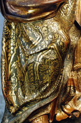 Puedes conseguir unos efectos chulisimos (similares a las ropas de las esculturas antiguas de las iglesias) si encima del dorado le das una pintura que tarde un poco en secar, y con un punzon vas retirandola y haciendo dibujos, filigranas... esta tecnica se llama estofado. Para la pintura te aconsejo que mezcles acrilico con yema de huevo; o pigmento, agua y yema de huevo que es como se hacia tradicionalmente. Te dejo una foto para que te des cuenta