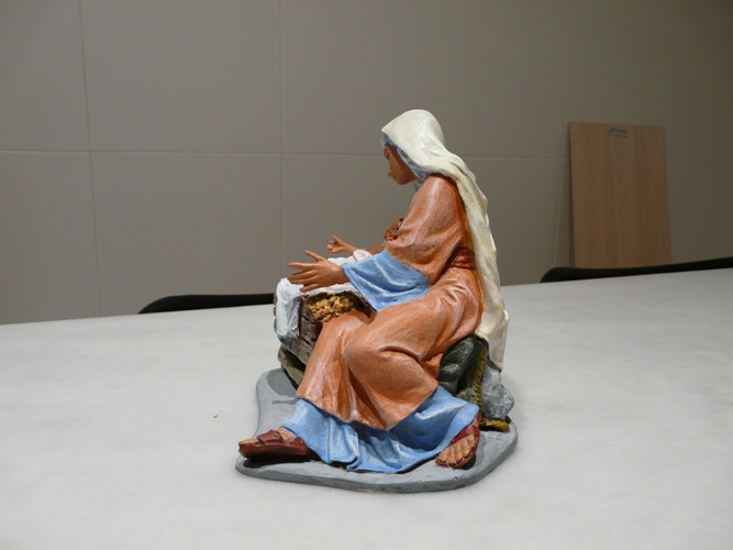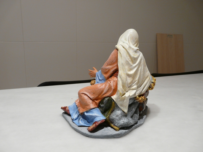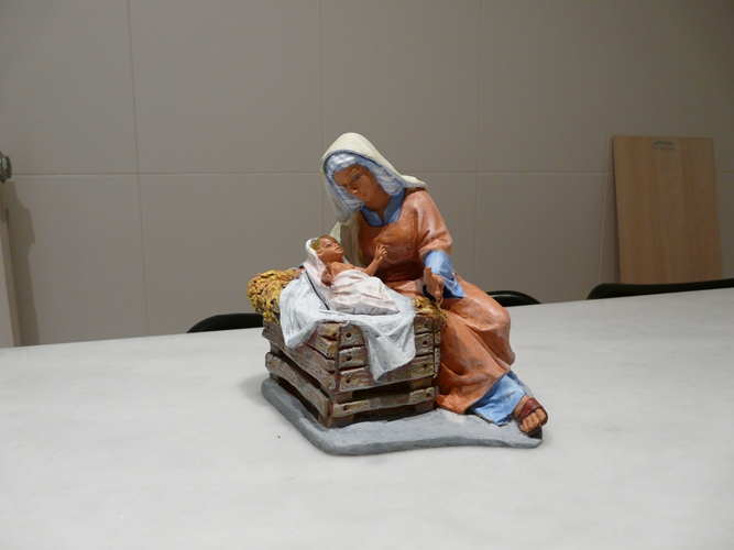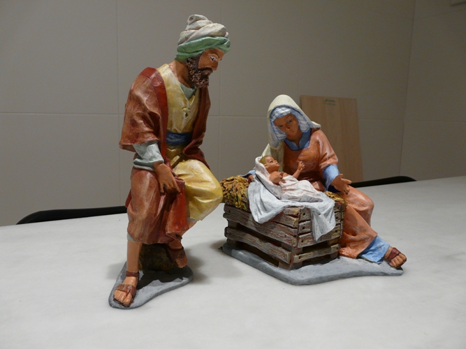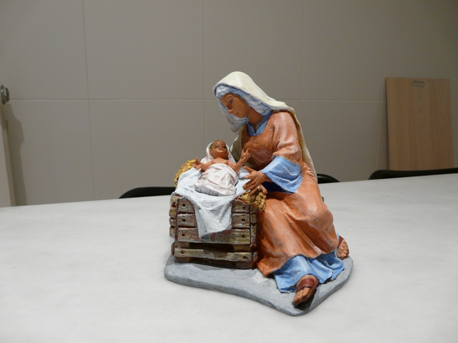 Ya tengo la figura de la virgen y el niño terminada, pero me acabo de dar cuenta de que tengo que retocarle los ojos a San José.