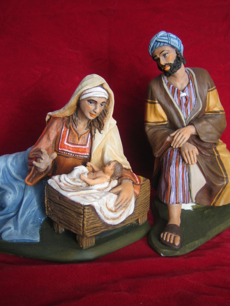 Abundando en lo dicho por Paquirri creo que el color de los labios no es adecuado, sobre todo en san José al que también le quitaria el de los mofletes, me parece que no pega esa barba tan bonita con el moflete... en fín menos varonil. Por lo demás, perfecto.