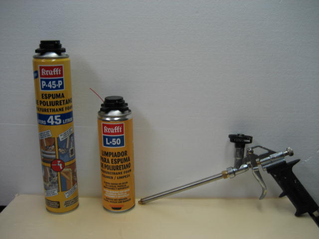 Siguiendo los consejos y explicaciones de nuestros amigos valencianos Lolapag y Laor, me he decidido a experimentar con la espuma de porexpan,para lo cual he comprado la pistola aplicadora, el spray de espuma y no menos importante el limpiador pues sin el, a la primera aplicación quedaria inutilizada la pistola al obstruirse su calibre.Aunque he hecho algo(pongo una foto de una especie de gruta), no tengo la suficiente experiencia en este material como para explicar su aplicación lo cual dejo a los más entendidos.Pongo las foto y precios de lo comprado.
