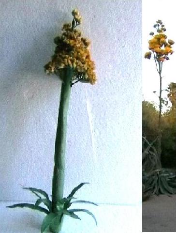 en dos de las fotos, comparo mi pita en flor a la existente en la actualidad en el madrileño jardín de las Tres Culturas.