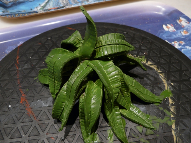 Lo peor es cuando llegas a colocar las del centro, he utilizado alfileres y pegamento para no aplastarlo más.