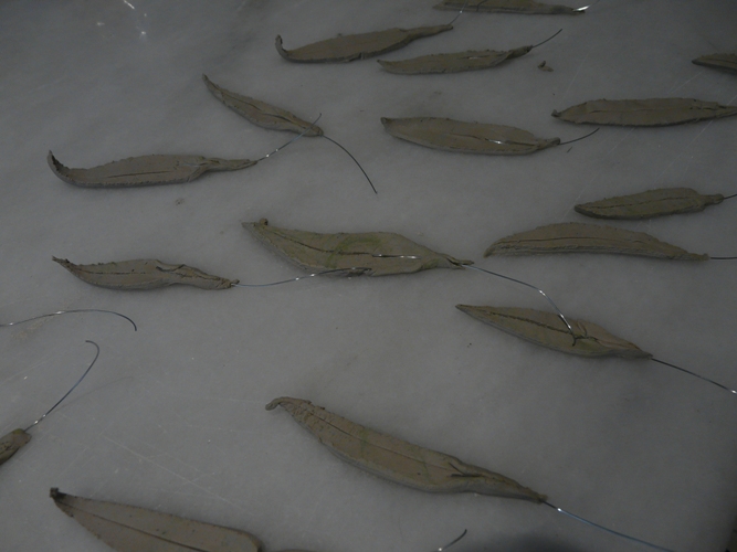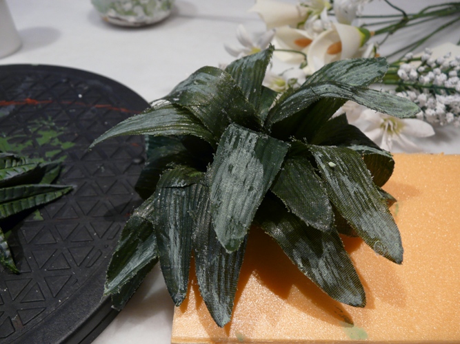 Estaba yo tan contenta con las hojas hechas con pasta de modelar y cuando empiezo a montarlas, en plan ramillete, no había manera. He tenido que hacer un bolo de pasta deprisa y corriendo para ir apretándolas.