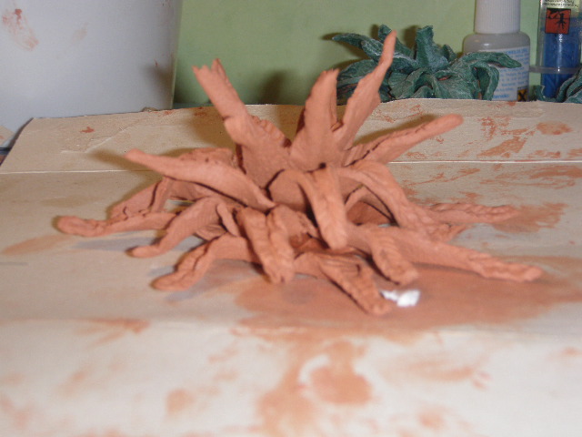Igual el secreto es empezar con las del centro. A ver si no se desmorona cuando la vaya a pintar, si no con silicona. Ya os contaré.