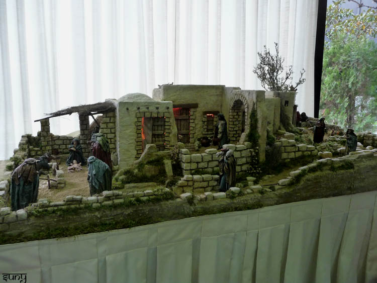 La norma no escrita, en cuanto a la ubicación de la escena principal, es la de reservar para ella, la zona dónde primero se dirige la vista al entrar en la estancia así que, compruébalo y sitúala ahí, trabájala a conciencia y con el mayor detalle posible así como una iluminación exclusiva que la realce pero, a la vez, le dé toda la calidez posible (es lo más importante del Belén) y el resto, siempre complementando a la escena principal pero sin quitarle importancia, te irá saliendo solo (paisaje, edificaciones...).