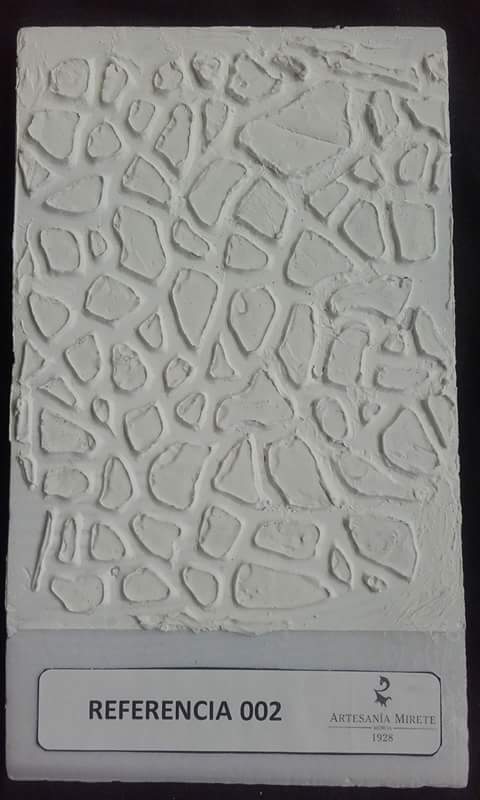 El material recomendado para este trabajo es aguaplast, el modo de utilización es muy sencillo, se coloca un poco de masilla encima de la plantilla y se extiende con una espátula para rellenar los huecos y así hacer las piedras, después de retira la plantilla y listo.