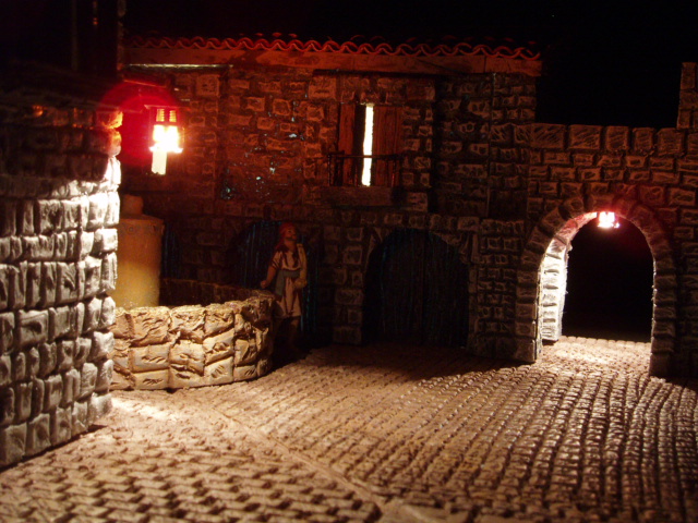 Me gusta mucho como ha quedado. Y me gustaría que dijeras cómo has hecho las tejas, porque están muy bien. Como crítica, podría decirte que la textura y tono de los ladrillos de las casas y la de los ladrillos del suelo es muy similiar. Yo habría puesto el suelo menos marcado para dar sensación de desgaste por uso. Pero ya te digo que me gusta mucho.