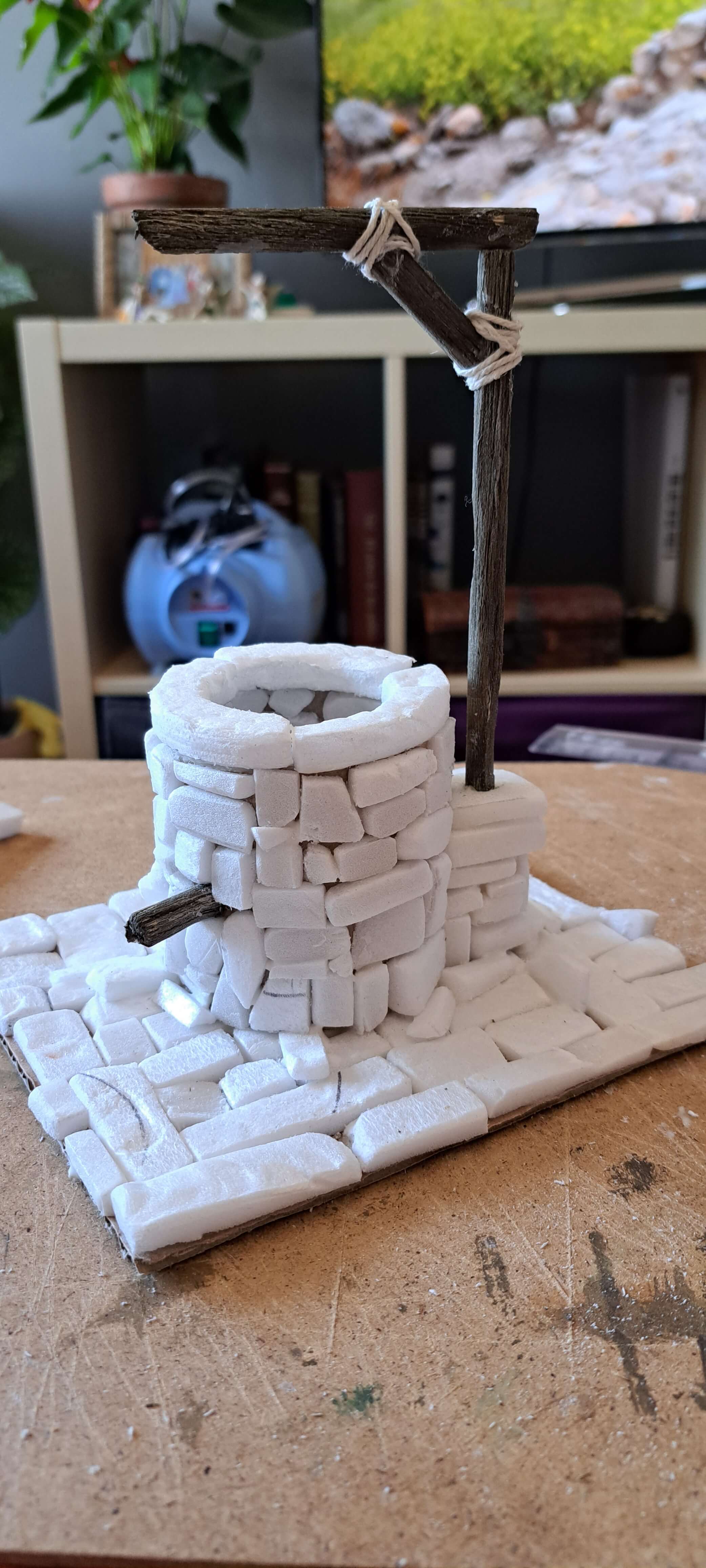 Se deja pintar muy bien. Otra cosa que me he dado cuenta al hacer el pozo y fuente que adjunto aquí es que se puede tallar directamente para hacer paredes de ladrillo o piedra pero si quiere conseguir un realismo mayor tendrás que echarle paciencia y cortar cada ladrillo o piedra por separado, lijarlo, tallarlo y modelarlo de tal modo que luego pegues una a una para dar ese realismo buscado. Me queda mucho por aprender pero lo bueno de este tipo de artes es que a cada cosa que haces aprendes progresivamente.