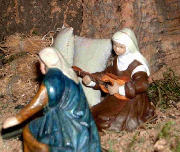 Hasta hora ha sido en el único Belén que yo he visto en mi vida (y conste que he vistos muchos, entre otras cosas por la edad que tengo), pues bien, cuando lo vi no sabia de que iba, y pensé: "estos franciscanos se meten hasta en el Belén", y luego pensando ya en casa que motivos los había llevado a ponerle, me di cuenta que podría ser San Francisco de Asís (si, ya se que fui un poco lento de reflejos, que se le va hacer, no caí en el momento)